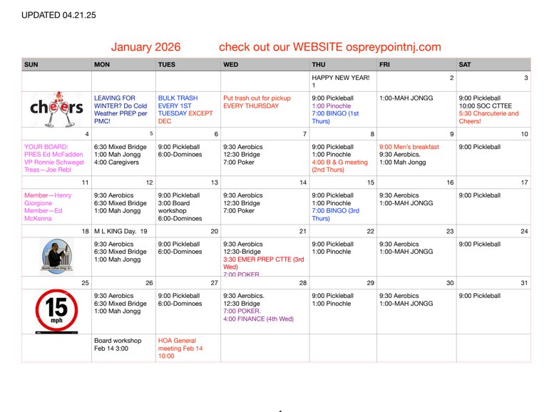 CALENDAR & EVENTS